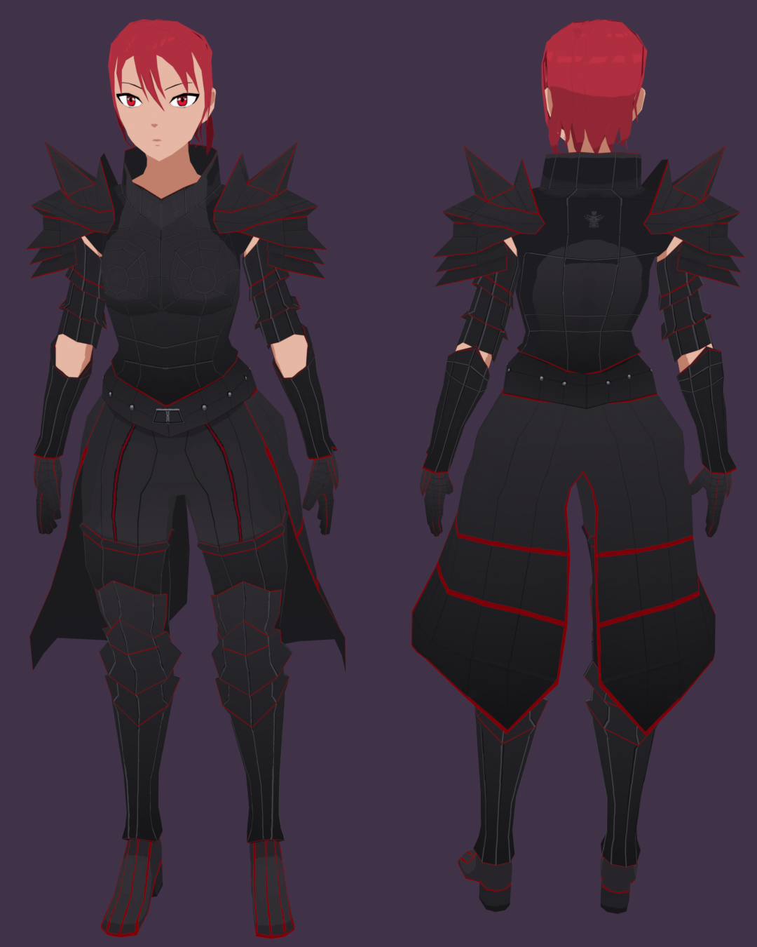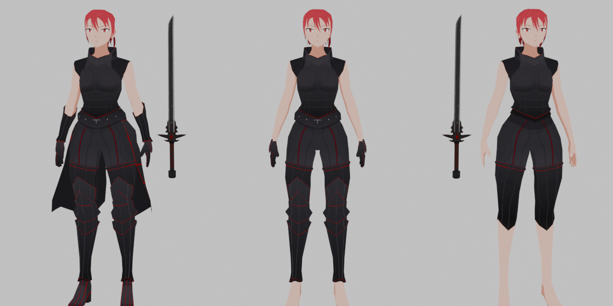 Texture sizes (PNG): Armor: 2048 × 2048 Body: 1024 × 1024 Hair: 512 × 512 Sword: 1024 × 1024